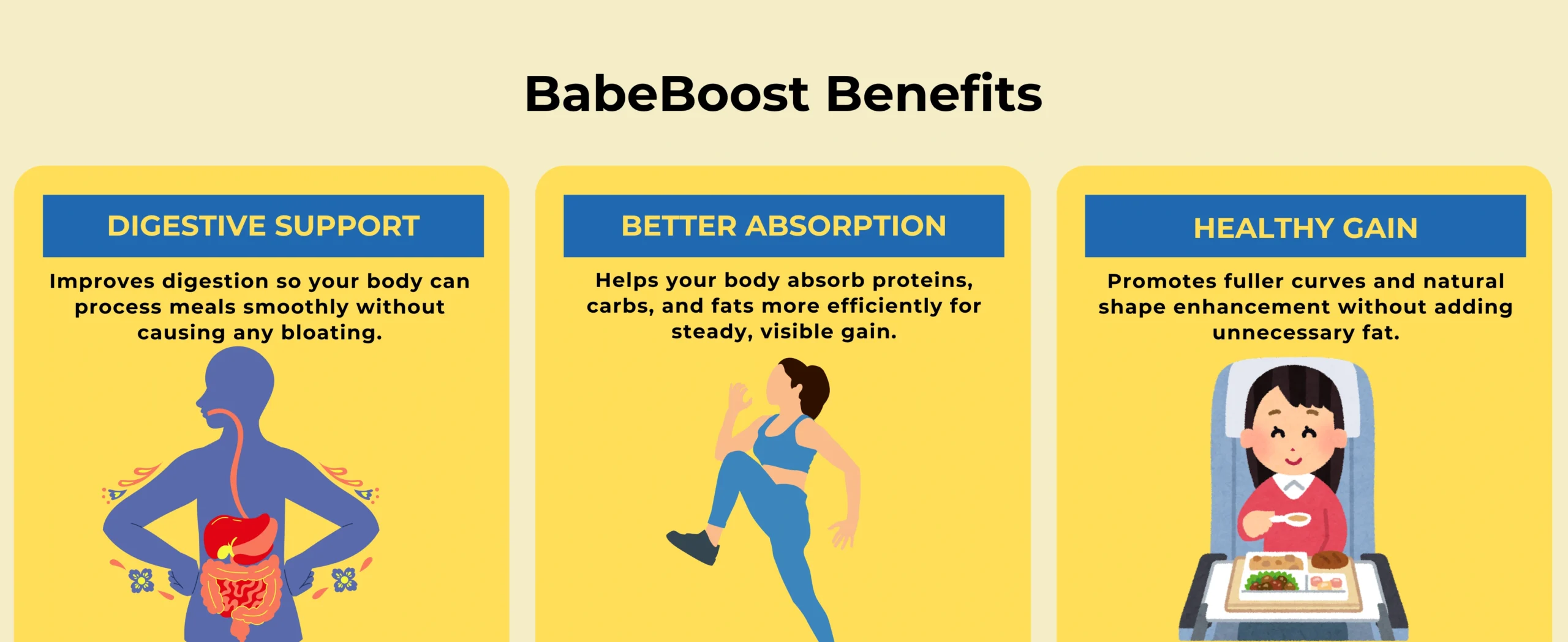 BabeBoost stands out from conventional mass-market weight gain powders due to its unique formula. Unlike many synthetic weight gainers that cause bloating and digestive issues, BabeBoost includes Ayurvedic herbs that enhance digestion, reduce gas, and soothe the gut. Thousands of users have noted that it’s the first weight gain supplement they’ve used that doesn’t upset their stomach, making it a comfortable choice without side effects.
