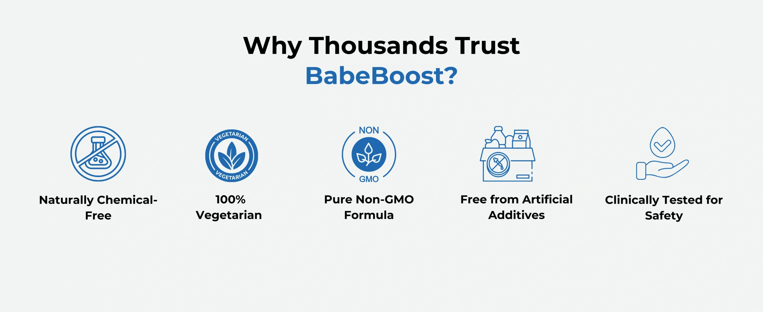 BabeBoost is a safe, plant-based herbal weight gain supplement suitable for daily, long-term use. It is 100% natural, ethically sourced, and free from synthetic additives and steroids. Certified by India’s FSSAI, it meets strict safety and quality standards. Many women in India have used BabeBoost without adverse effects. However, consult your doctor if you’re on prescription medication or have a pre-existing health condition before starting any new supplement.