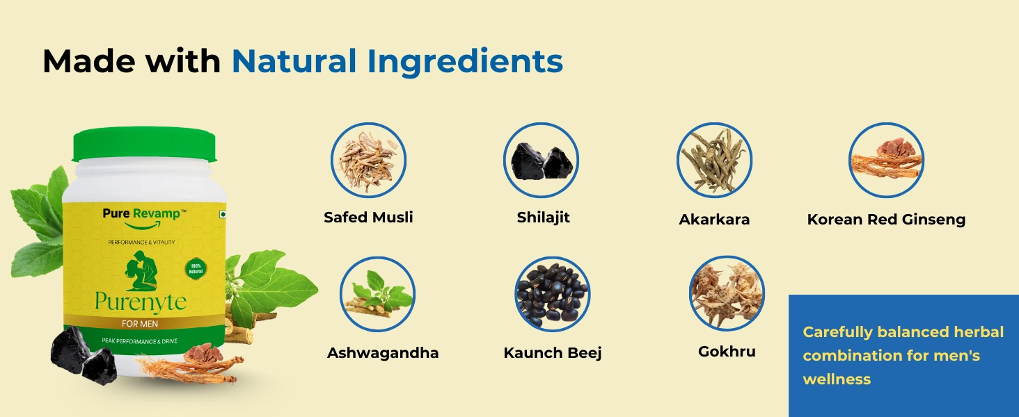 Addresses Root Causes: PureNyte doesn’t just mask symptoms. Its Ayurvedic formulation works on nerve strength, hormonal balance, blood circulation, and stress reduction, tackling the root causes of low libido and sexual weakness.