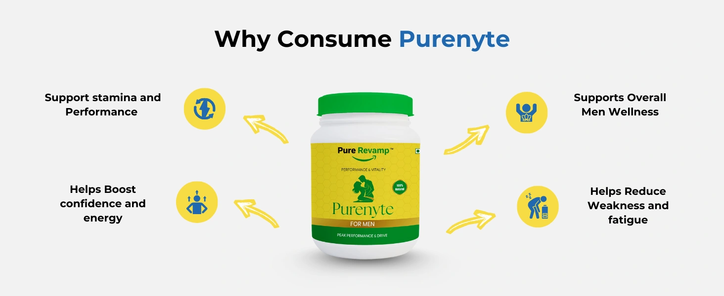 PureNyte is designed for men above 18 years who experience any of the following: reduced sex drive or low libido, declining stamina and physical endurance, general weakness or debility, low energy and fatigue in daily life, reduced confidence and performance anxiety, or age-related decline in vigor and vitality. Whether you’re in your 20s dealing with stress-induced issues or in your 40s–50s looking to restore youthful energy, PureNyte’s comprehensive Ayurvedic formulation adapts to support your body’s natural healing process.